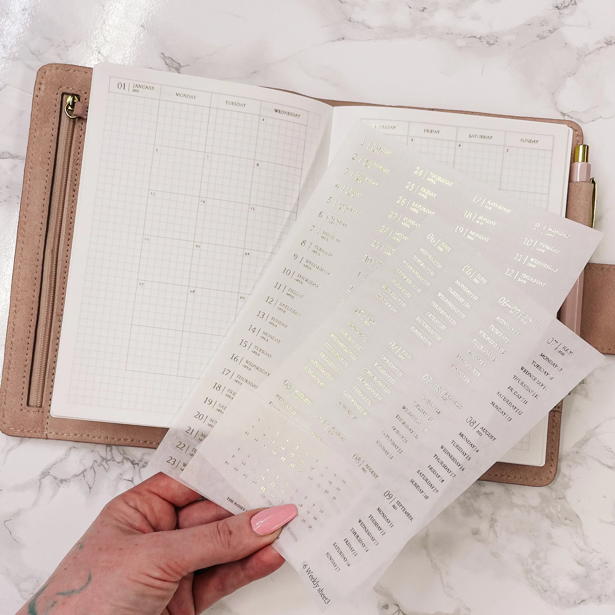 2026 DATE STICKERS FOR UNDATED ROSEY PLANNERS & NOTEBOOKS | GOLD OR BLACK OR ROSE GOLD